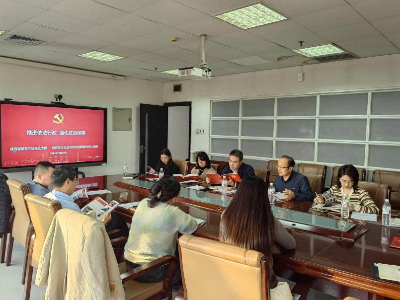 为深入学习贯彻党的二十届三中全会精神,进一步加强党支部之间的交流与合作,11月20日下午,省教育厅法规处党支部一行与乐动(中国)官方在线登录立法与党内法规研究中心党支部在兴庆校区主楼E910会议室联合开展了“推进依法行政强化法治保障”的主题党日活动。省教育厅法规处支部处长付仲锋、副处长张世飞等一行七人,和乐动网页版乐动(中国)官方在线登录党委书记王保民教授、立法与党内法规研究中心支部书记杜军强老师等立法支部师生代表共同参加了此次活动,会议由支部书记杜军强老师主持。