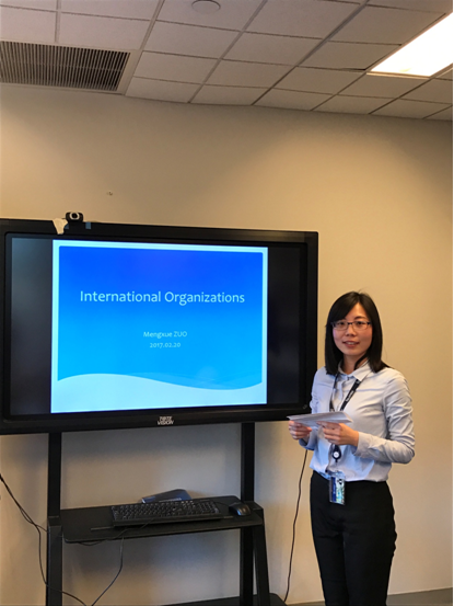 2017年1月3日至2017年3月3日,我校乐动(中国)官方在线登录博士研究生左梦雪赴联合国纽约总部大会与会议管理部(DGACM)进行了为期9周的实习。