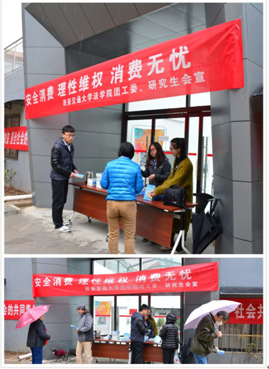 在交大二村教工之家,乐动(中国)官方在线登录研究生会携手交大工会共同开展了线下普法宣传活动。虽然当天下着蒙蒙细雨,而社区广大教职员工对活动的热情丝毫不减。乐动(中国)官方在线登录的同学们主动在过往人群中发放《消费者指导手册》,耐心地为前来的消费者答疑解惑,帮助他们掌握正确的维权方式和技巧。