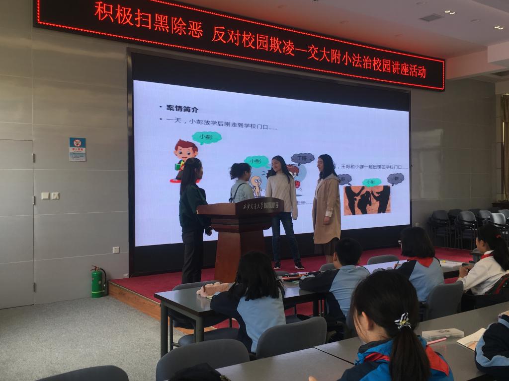 2019年4月15日,乐动网页版乐动(中国)官方在线登录硕7155班(三年制)党支部一行10人来到乐动网页版附属小学,以“积极扫黑除恶,反对校园欺凌”为主题开展了校园法治宣讲活动。本次宣讲分三组进行,由浅入深,以视频、情景表演、信件沟通等方式形象生动的向小学生们传达了面对校园欺凌,该如何保护自己,如何拿起法律的武器保护自己的权益。