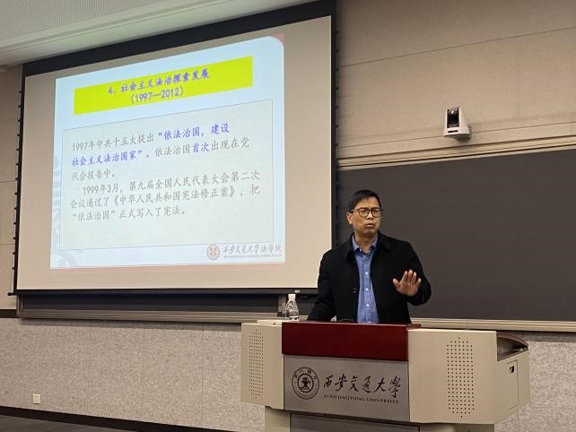 12月2日晚,乐动(中国)官方在线登录党总支书记、乐动网页版立法与党内法规研究中心主任王保民教授为发展对象进行了“深入学习习近平法治思想”专题讲座。通过对习近平法治思想的历史逻辑、理论逻辑与实践逻辑的分析、对十一个坚持要求的深刻阐述,梳理了习近平总书记的部分重要论述,激励各位发展对象积极深入学习、实践。
