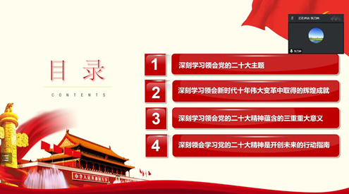 12月9日,乐动(中国)官方在线登录硕2185党支部和硕2186党支部召开了“贯彻落实二十大精神,做新时代青年人”专题宣讲学习会,邀请学院学生工作专职委员张乃钟老师进行了主题宣讲。本次会议采取线上的方式进行,硕2186党支部书记付思鑫主持会议,硕2185党支部、硕2186党支部全体党员参加了会议。